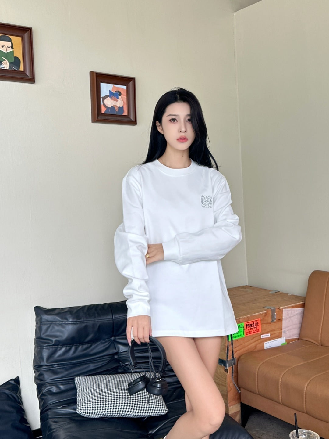 Loewe 胸口小LOGO 刺繡 長T